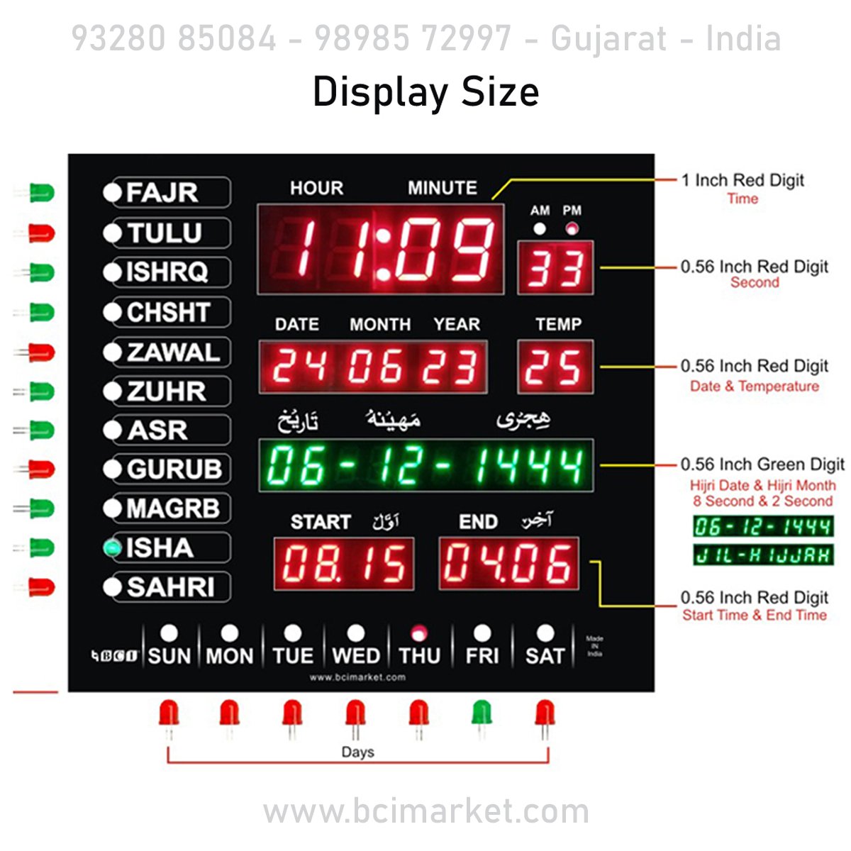 Azan Time Calendar Clock with Hijri Date – Month For Home & Office Warranty Conditions : BCI Electronics manufactured and tested to International Quality And Performance Standards by expert technicians.